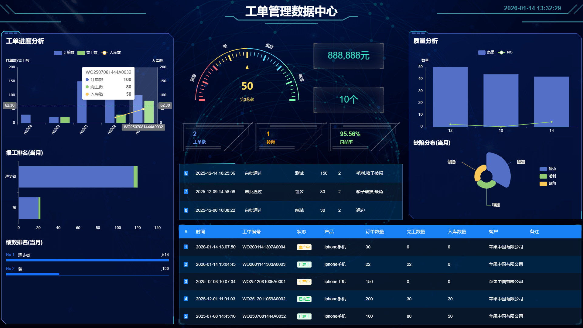 智能工单系统:自动化生成、分配与管理生产工单,减少人为错误,提升工作效率。